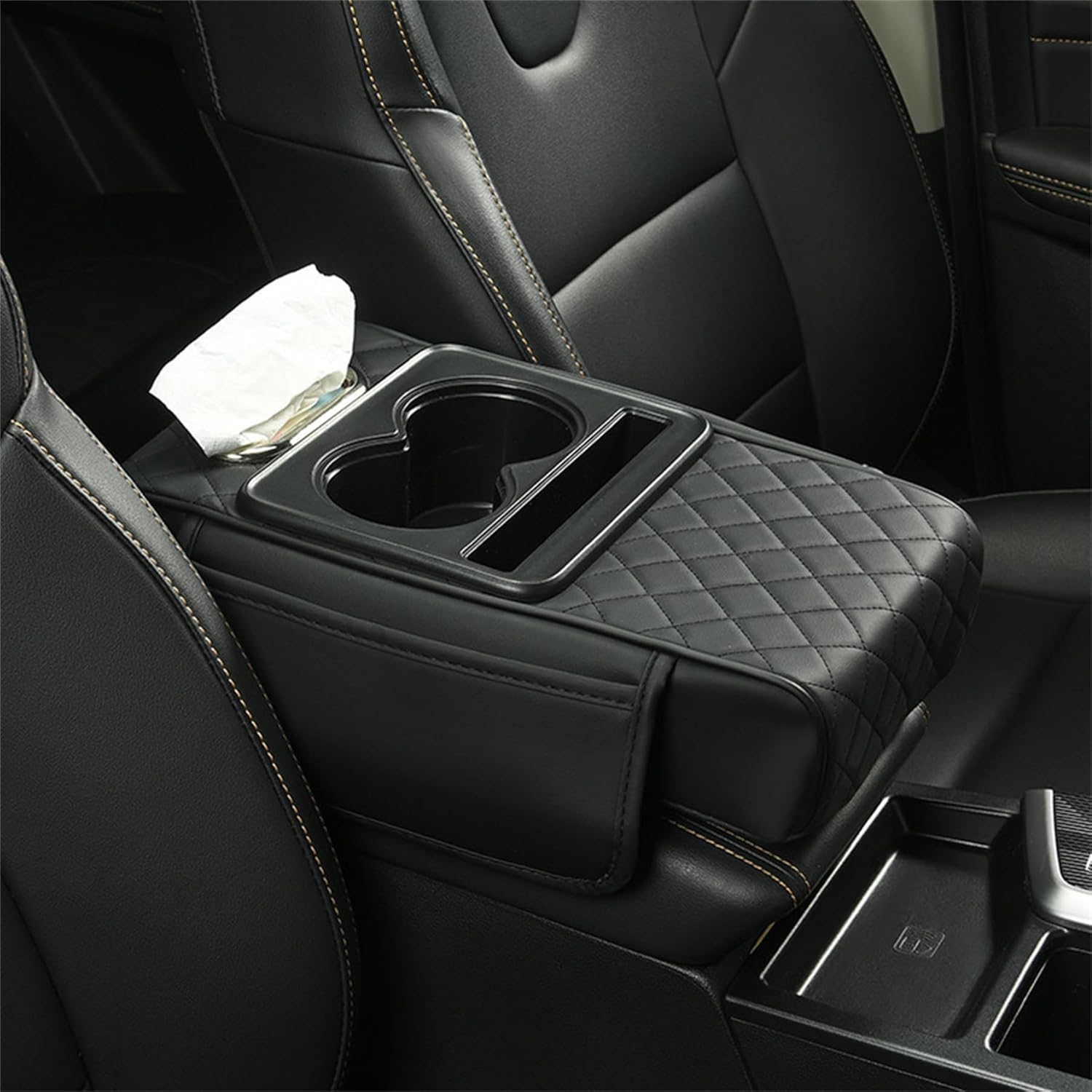 4-in-1 Functionality – Armrest cushion + bottle holder + tissue box + storage compartment